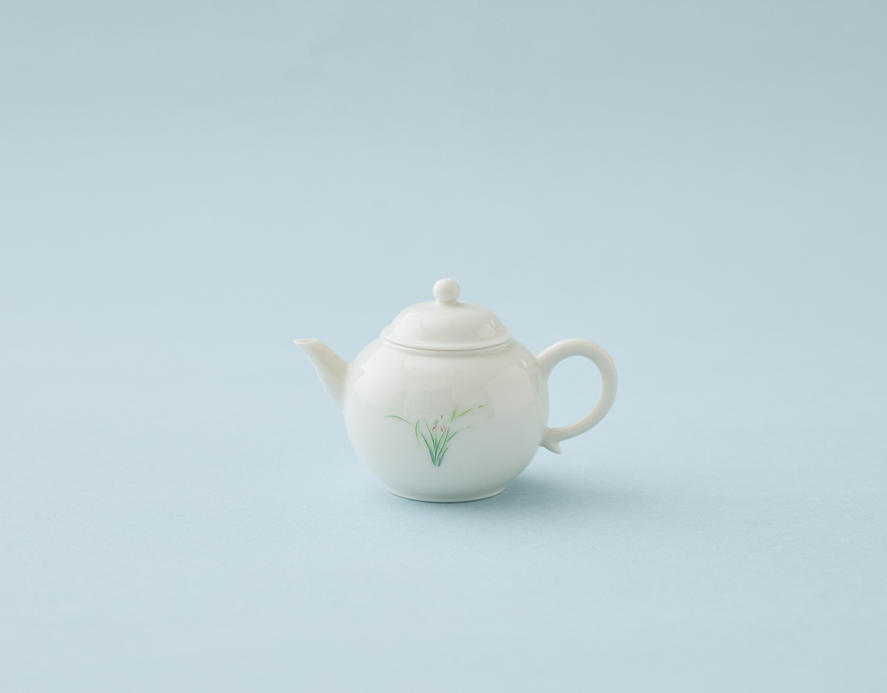 優雅な気品溢れるフォルムに、上品な蘭の花の模様をあしらった茶壺(急須)です。
