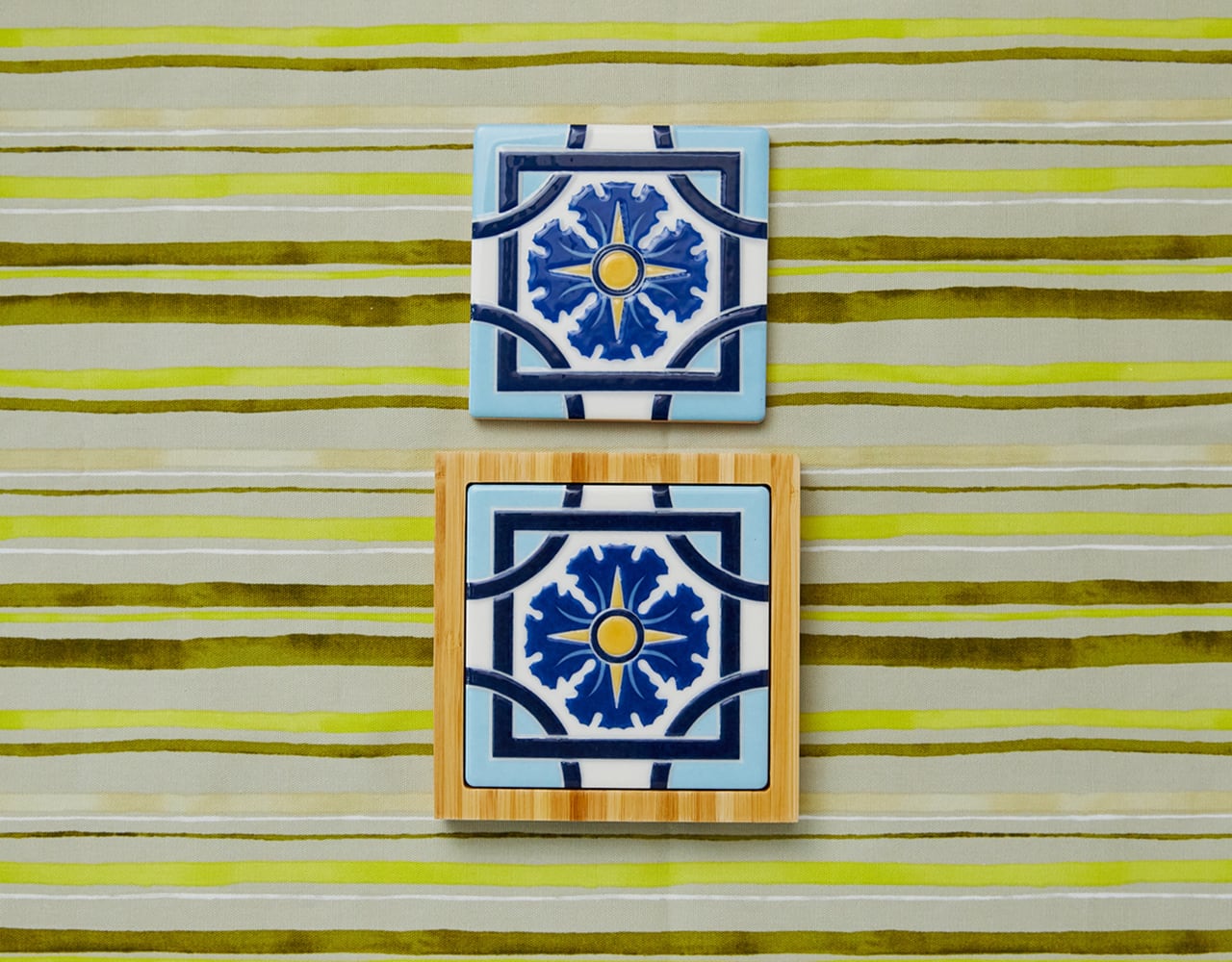 100年以上前に台湾で愛されたマジョリカタイルの復刻版です。竹製のフレーム入りで、壁掛けやコースターとしてもお使いいただけます。
